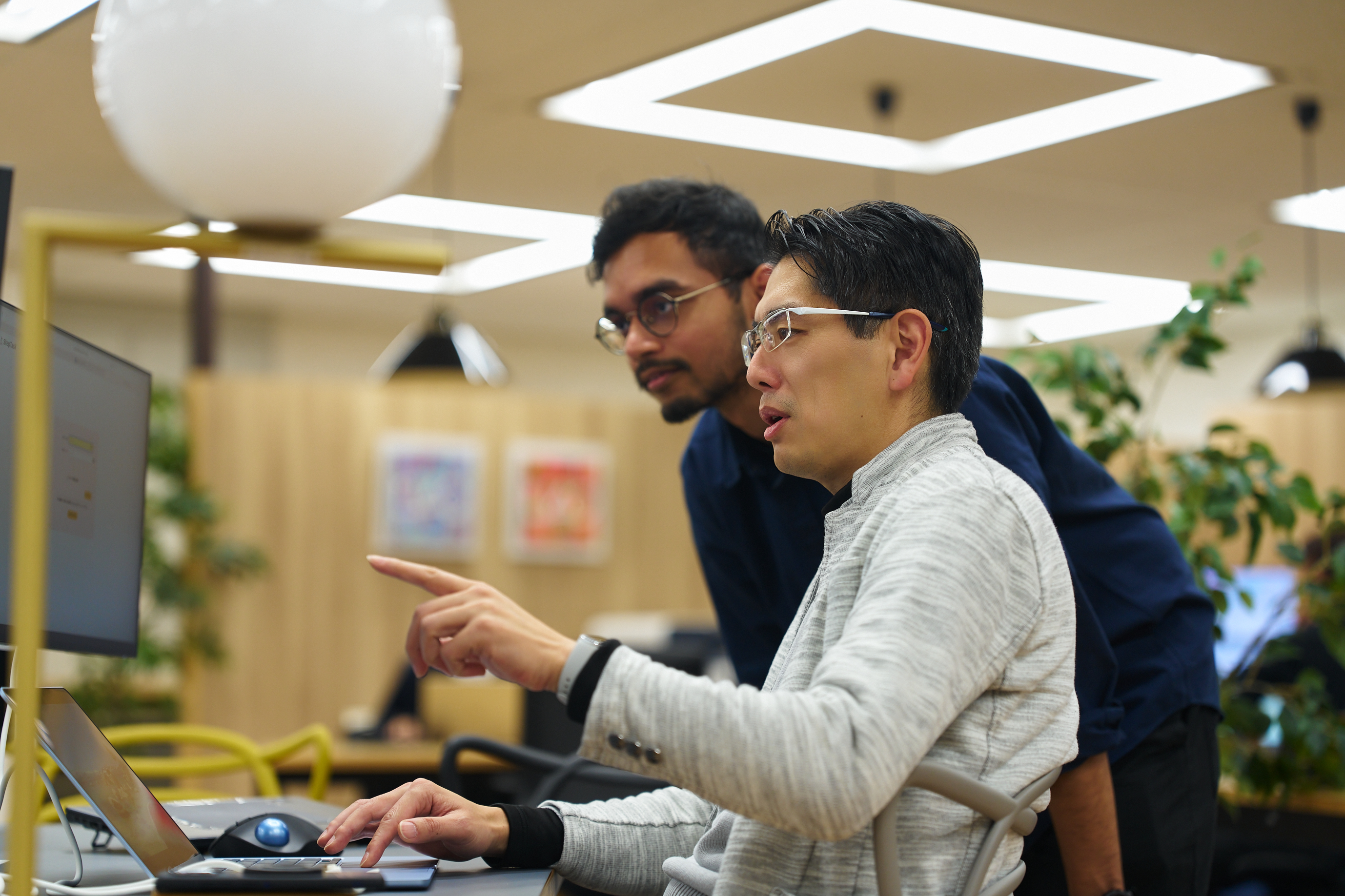 朝礼後は、社内システムの仕様確認や関係部署との打ち合わせが続きます。必要があれば、その場でエンジニアを呼んで短時間の相談も。部署の壁が低いので、気になったらすぐ声をかけられます。