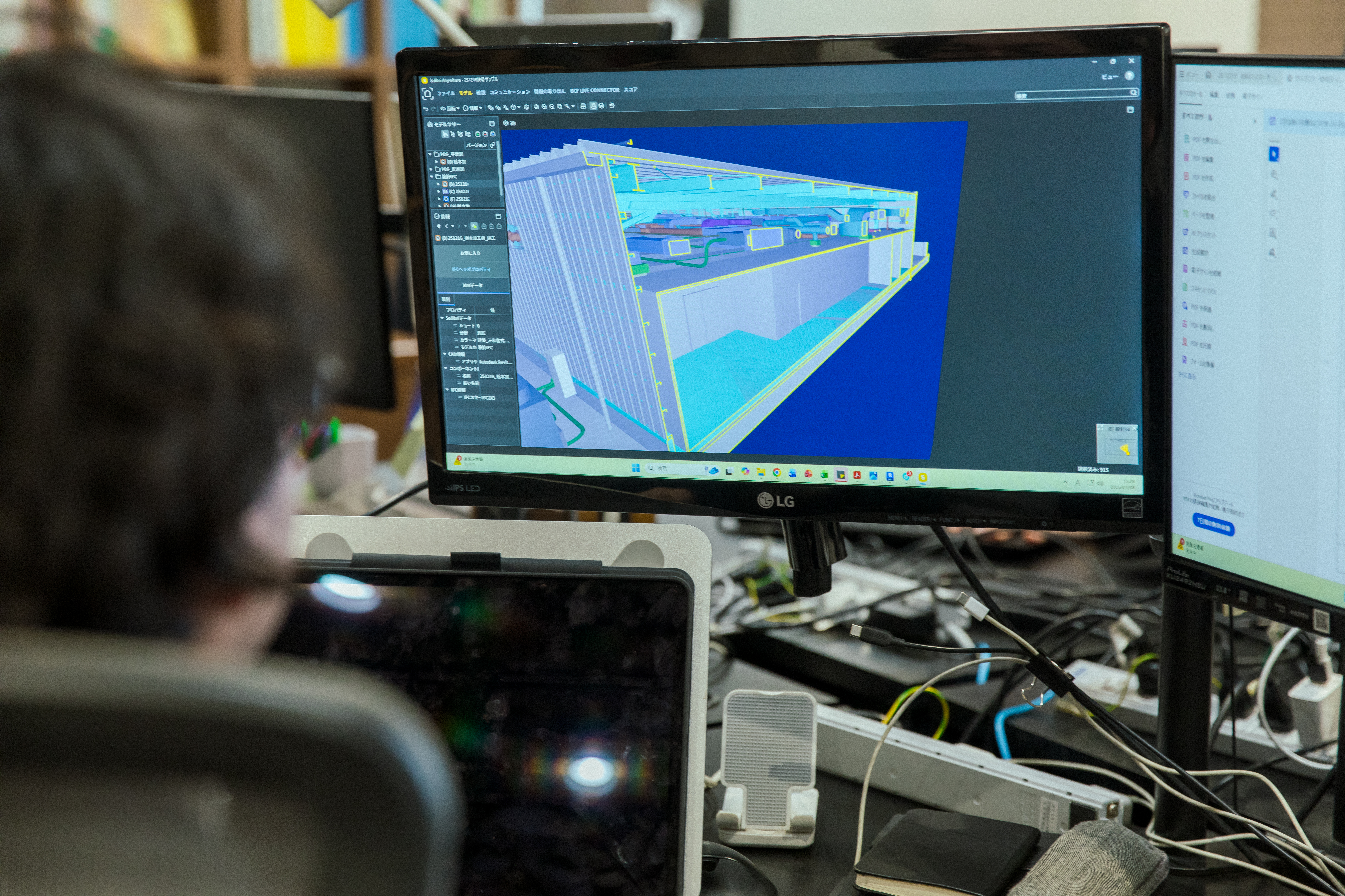 重ね合わせ会を行ったプロジェクトとは別の案件も並行して進めています。「図面にパネルを1枚ずつ入力するなど、そんな細かいことまでやっているの!?と驚かれるほど地道な作業も多い仕事。でも、細かい作業をやっているときほど僕はワクワクするので、モデル作成は楽しいです。」