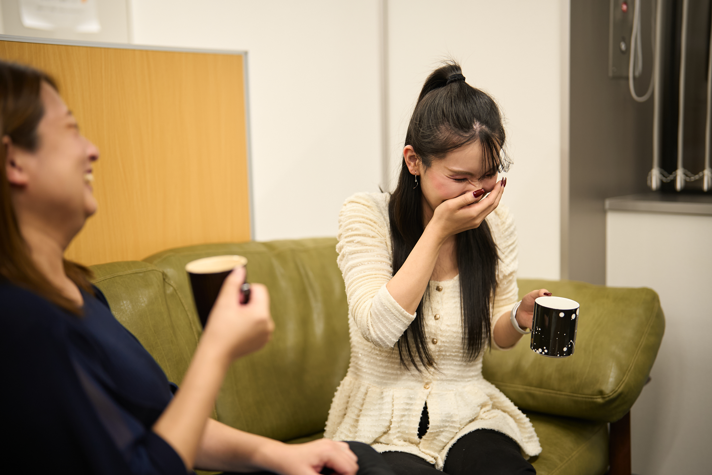 同社ではトータル1時間45分の休憩があります。撮影後にはホッと一息。大好きなグミやハイチューで糖分を補給。