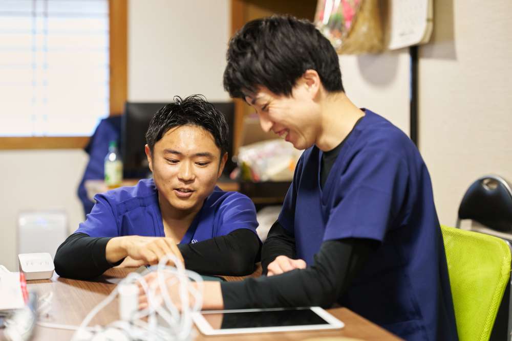 | 未経験でも全面サポート | 入職後は、まず先輩スタッフとの同行訪問からスタート。現場の流れや利用者さんとの関わり方を、実際のケアを通して学んでいきます。訪問中や訪問後に出てきた疑問や不安も、その都度共有し、みんなで一緒に解決していく環境が整っています。 |