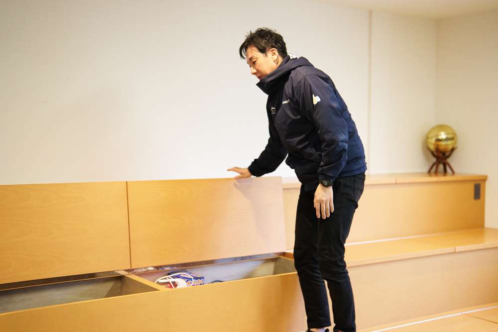 階段収納には、社内イベントで使用する用具やゲームが!