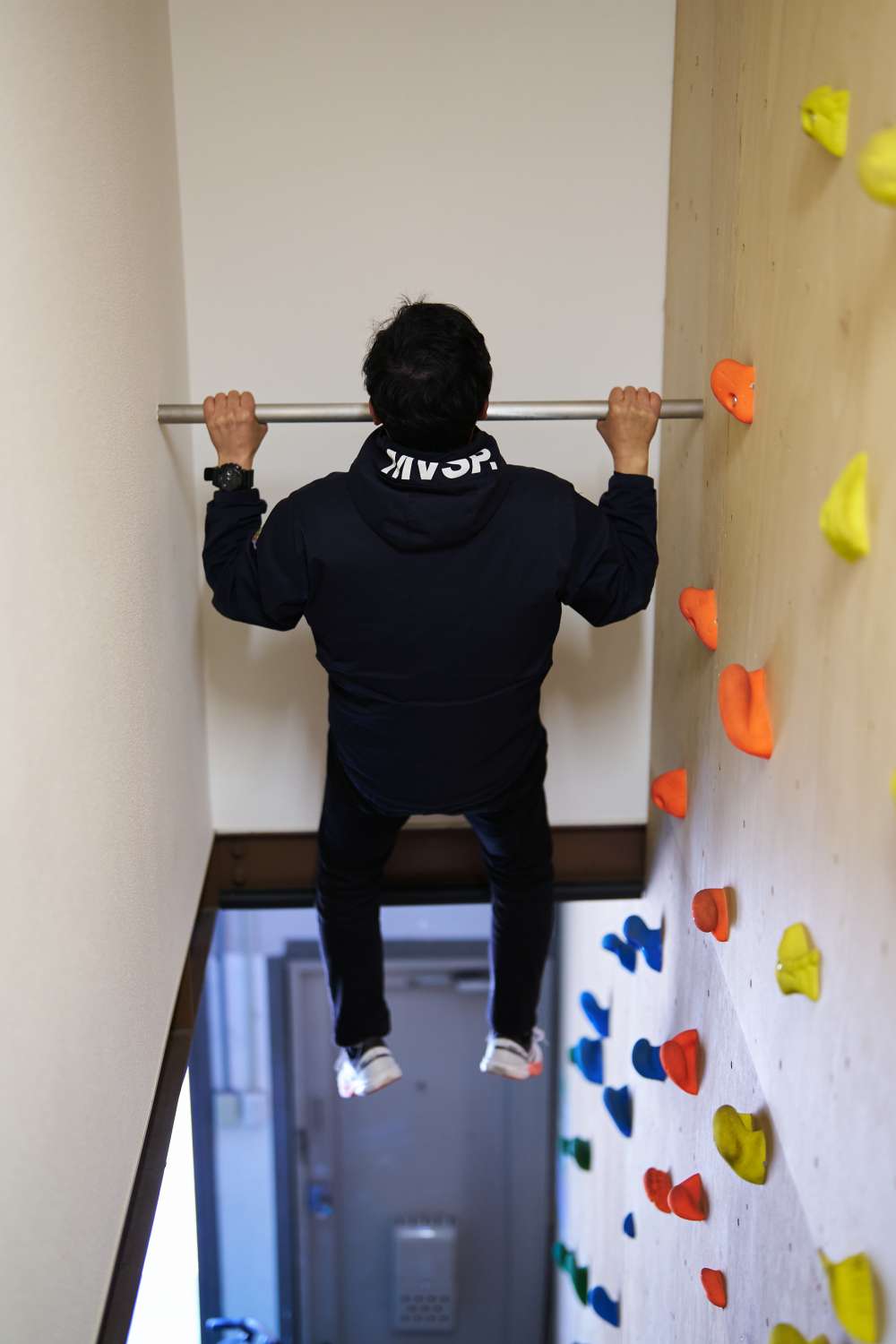 ボルダリングの壁だけではなく、懸垂ができるバーも!