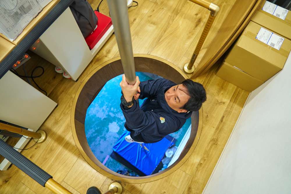 1階と2階をつなぐのぼり棒。2階の床がパカっと開くのは驚き!