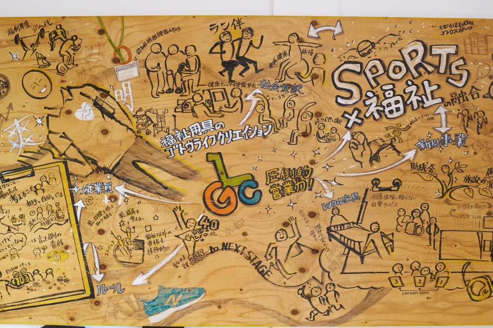 イラストレーターさんが描いた、ゴトウライフクリエイションの思いが詰まったイラストボード!