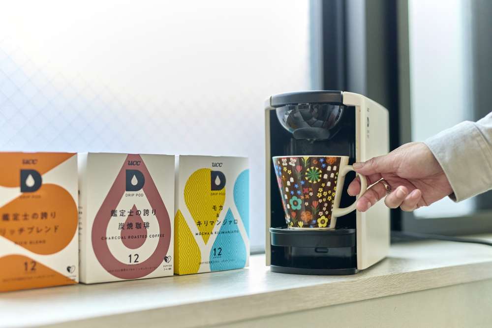 お茶、コーヒー、紅茶が無料で飲めるサーバーがあり、休憩にもうれしい。